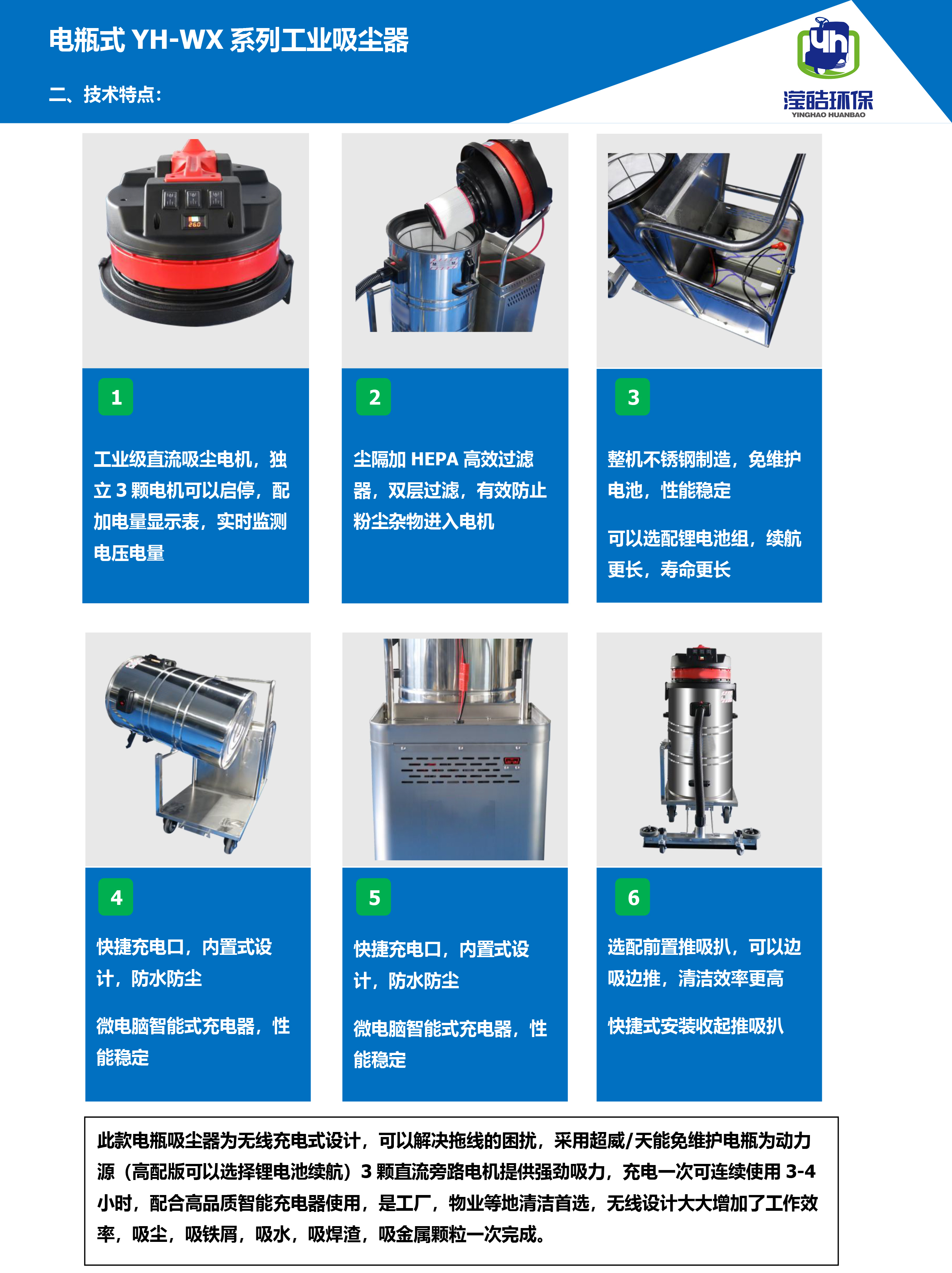 • 瀅皓YH-WX無線式工業吸塵器